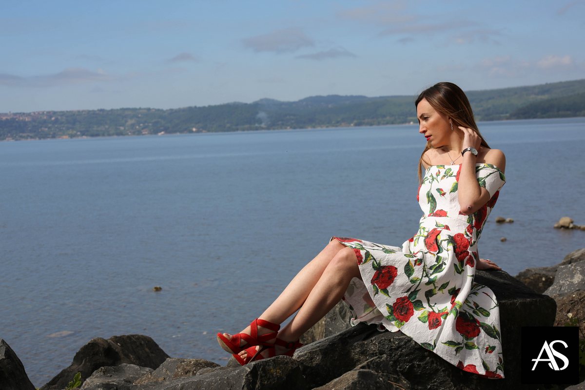 Io per questa estate ho scelto un abito firmato Fruscio (che potete acquistare qui), con rose rosse stampate su uno sfondo bianco. Il taglio è abbastanza particolare, ha le spalle scoperte e la gonna sul retro è più lunga. Questo abito può essere perfetto sia per un’uscita serale sia per una cerimonia di giorno.